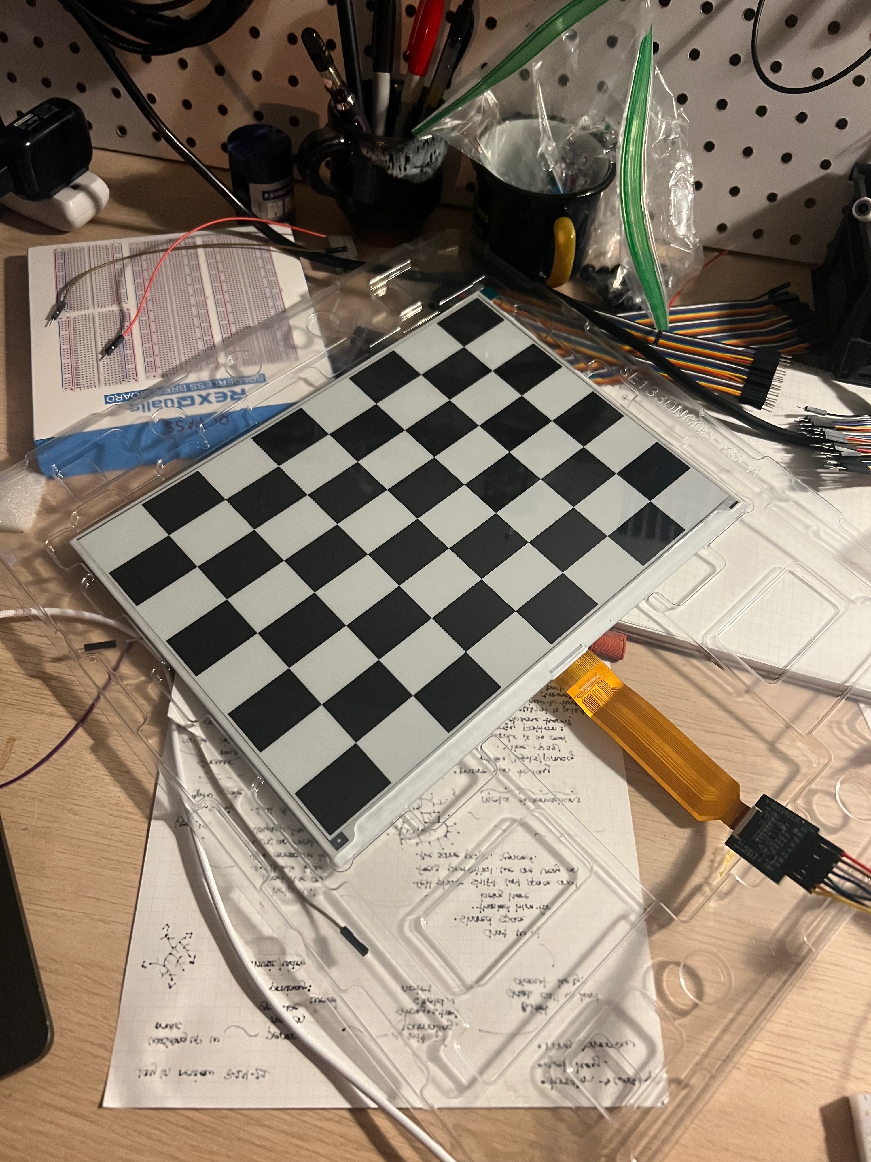 During my four visits to HQB, I acquired a couple 1.69 inch ePaper displays (straight from the factory!), a small solar panel, a pocket multimeter 🤓, a USB power tester that says “please look forward to this feature’ when I switch it to English, and various other fun knick knacks. But the prize of my trip was a 13.3 inch eink panel, also straight from a different factory that manufactures them! More on this project soon.